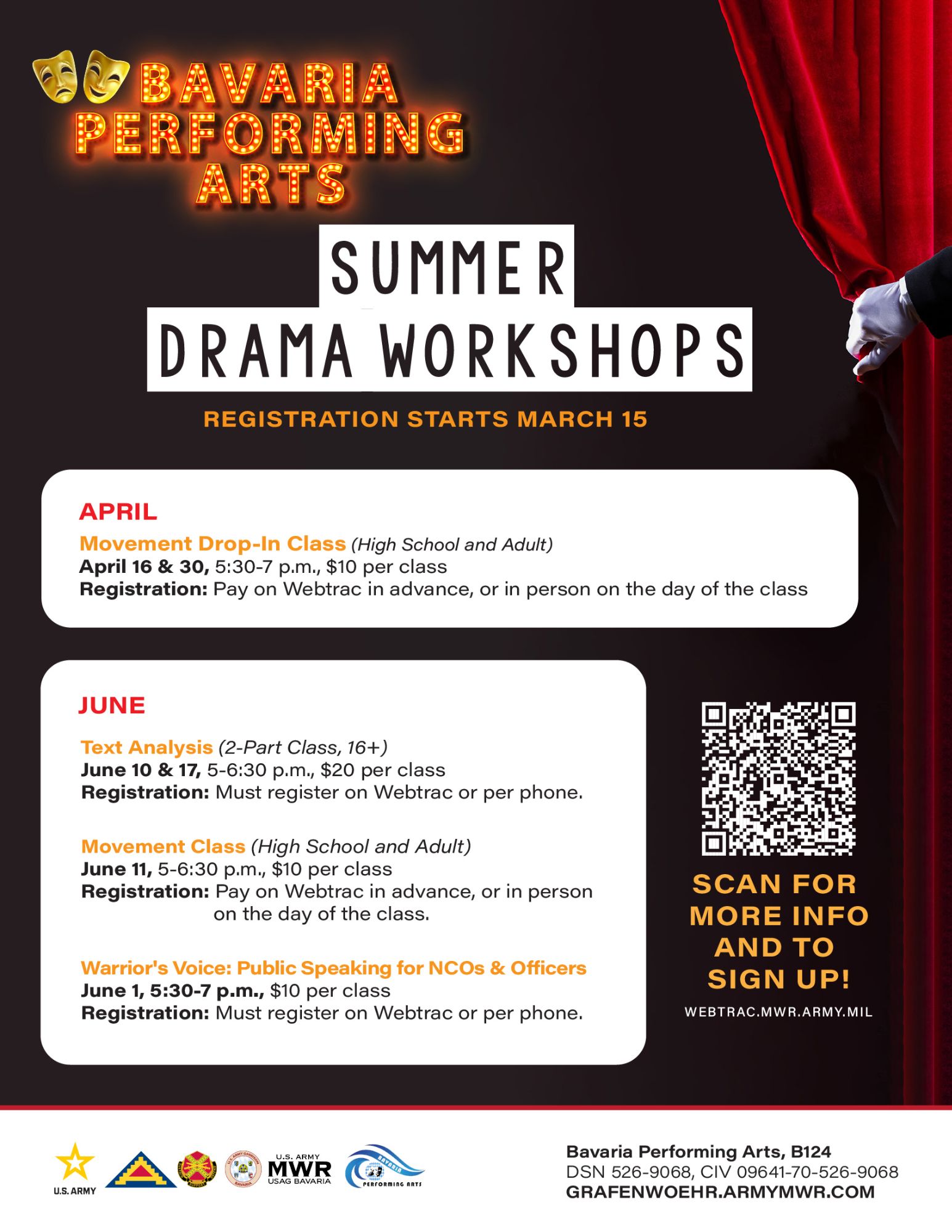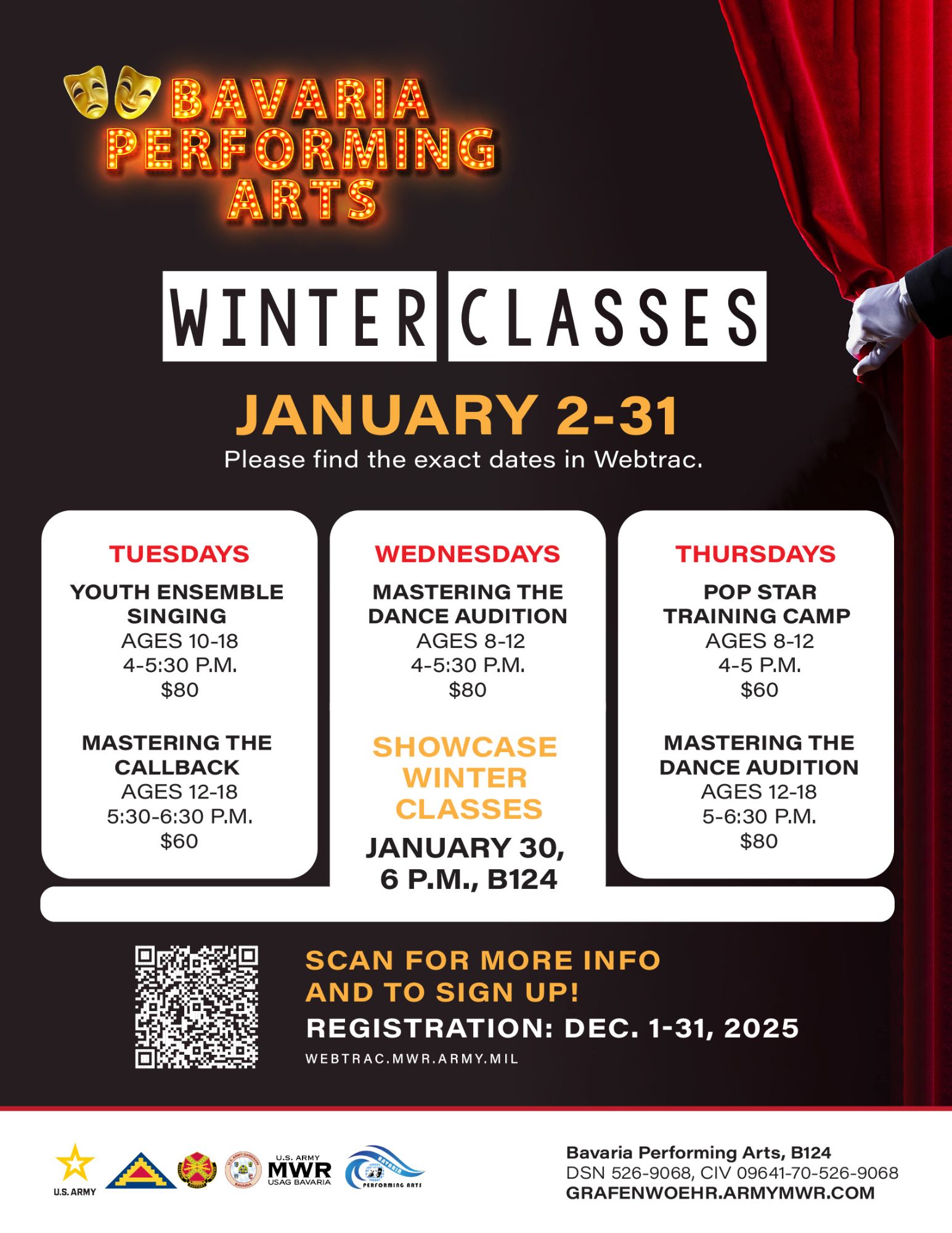 Bavaria Performing Arts Classes can found on our MWR Recreation Webtrac Calendar.