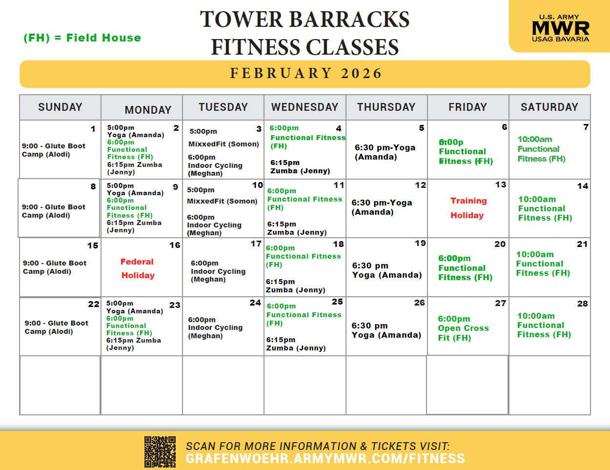 Contact Tower Barracks Physical Fitness Center or Jesse L. Williams Fitness Center