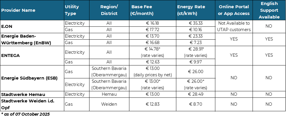 Some utilities could fall under additional cost "Nebenkosten", paid directly to the landlord, these costs are not covered by UTAP. For people who own their residence, all utility costs are covered by UTAP.