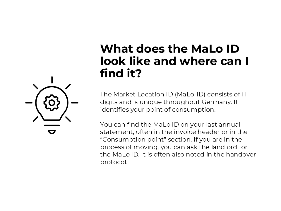 - MarktLocation-ID (MaLo)/Residence Locator Number (MaLo info)